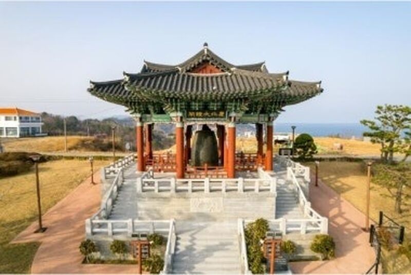 경북 영덕 삼사해상공원에 조성된 경북대종 전경. 경상북도를 대표하는 상징물인 경북대종은 올해 타종식에서 도지사와 도의회 의장이 모두 불참해 논란이 일고 있다.