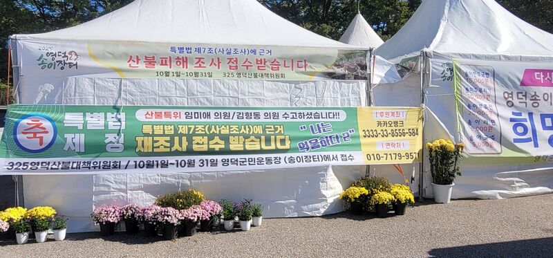 이에 영덕군 일부 마을 주민들과 사회단체는 "비롯 지역구는 아니지만.산불 피해지역 국민들의 아픔을 함께한 김형동 의원께 감사드린다"는 문구의 현수막을 걸었다.