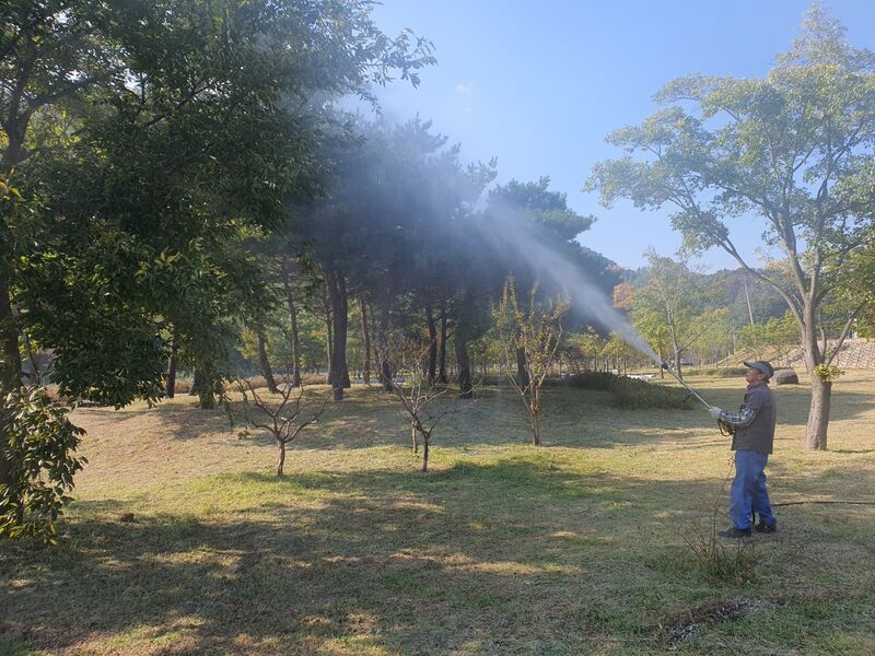 특히 진딧물의 대량 발생으로 수목의 생육이 약화되어,일부 수목은 낙엽이 조기 발생하는 등 경관이 크게 훼손된 상태다