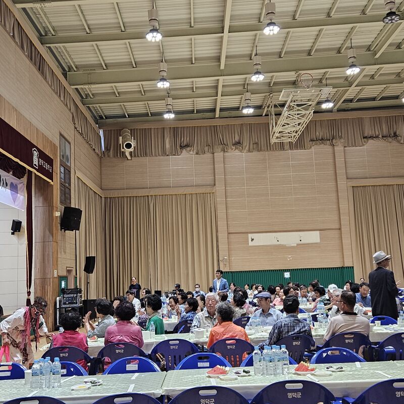 경북녹색환경연합 상임회장 배영달 은 회원들과 함께 지난 6월 29일 (일요일) 영덕군 영덕읍 영덕고등학교 체육관 에서 산불피해 영덕읍 주민 어르신들 400여명 참석한 가운데 밥 한끼 나눔 및 위로공연 행사를 개최 했다